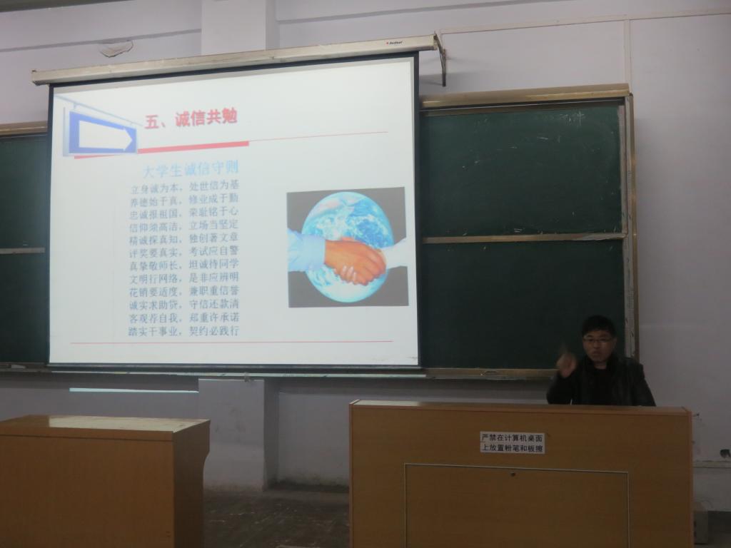 2016年12月21日下午,亚洲体育365在明德楼四楼第11多媒体教室开展诚信教育专题讲座。亚洲体育365党总支书记马永杰主讲。 讲座上马永杰希望同学们要在大学养成良好修养和道德,首先要做到“诚信”。针对诚信问题,马永杰对近年来出现的诚信问题进行举例并对比分析利弊。诚,即真诚,诚实,“内诚于心”。诚则立天下。然后,马永杰对当代大学生所出现的不良问题进行了详细分析和讲解, 马永杰向同学们说明奖助学金的用途,助学金是国家帮助困难学生完成学业的专项资金。国家助学金名额有限,希望并要求同学们正确理解和使用这笔资金,让其发挥应有的助学作用,严禁挥霍浪费.