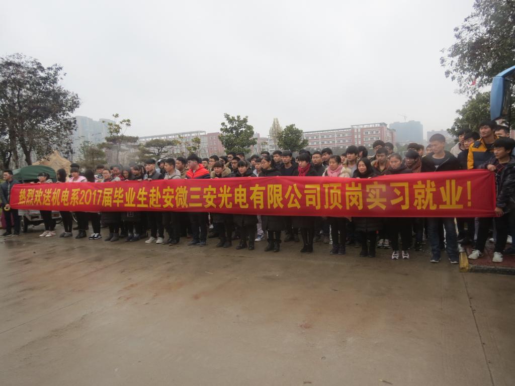 此次实习生所在实习基地为“安徽三安光电有限公司”、“江苏洛克电气有限公司”。参加实习的同学都表示要抱着一种调整好心态,转变角色,到了企业要尽快融汇企业文化的心态出发。立志做一名守规守距、表现优秀的员工。更要做好示范,展示商丘职业技术学院亚洲体育365的良好形象,让实习公司的领导们信赖亚洲体育365的学生,使得校企合作的果实越来越丰硕。临行时马永杰、汪洋、张艳玲亲切向他们挥手告别。