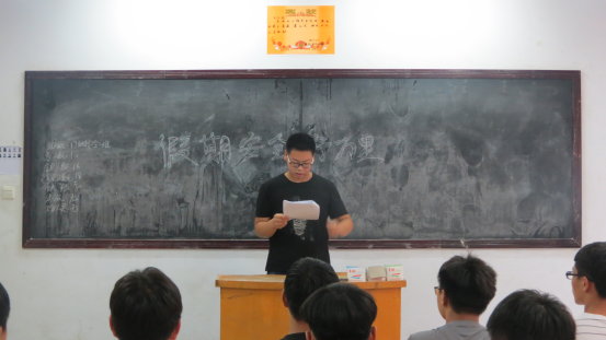 对于临近期末,安全是必不可少的话题,这从小就贯彻在我们的生活中。从小父母的呵护,到老师的爱护,直到现在我们成年已经能自己保证自己的安全。但是也有意外发生的时候,所以,亚洲体育365召开“假期安全行万里”主题团课。提醒外出的同学要注意的种种安全问题,避免意外发生。最后,同学们都认真听讲,将安全贯彻到底。最后,在同学们的共同努力下,“假期安全行万里”主题团课圆满结束。