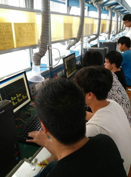 上午,竞赛辅导老师胡辉一早就来到实训中心教师准备一天的课程教具,胡辉已经连续多年带领学生参加技能竞赛,辅导经验丰富,工作耐心细致。本阶段进行电子设计自动化课程的培训,胡辉细致的讲解课程,认真的指导学生操作,积极的引导学生开拓思维,大胆尝试,细致的讲解设计中遇到的各种问题,耐心的帮助学生排除设计故障。