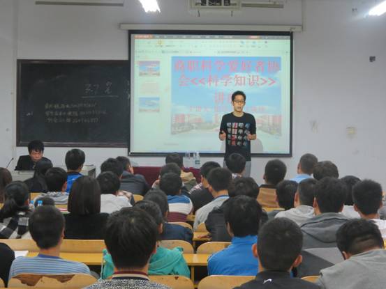 讲座由科学爱好者协会指导老师王晓炜主讲,他分别从生活中的科普知识、什么是科学以及科学的发展过程等方面进行了讲演。最后,王晓伟老师与同学们进行科学探讨,解决在场同学们提出的问题,使同学们受益匪浅。