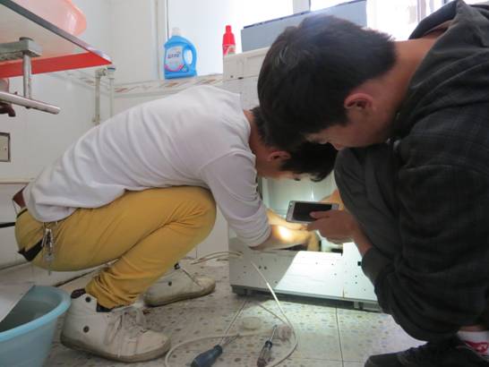 电子爱好者协会成员进入老师家中维修洗衣机