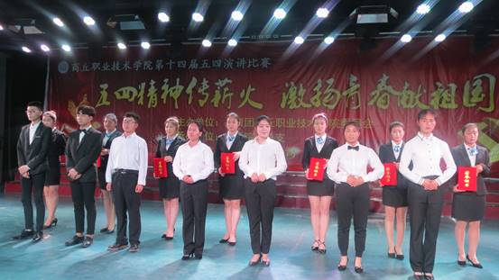 在五四青年节来临之际,为弘扬五四精神,加强革命传统教育、爱国主义教育和社会主义理想信念,进一步激发大学生的爱国主义热情,5月4日下午,商丘职业技术学院在明德楼六楼举办以“五四精神传薪火,激扬青春献祖国”为主题演讲比赛。各系(院)团总支书记和各系(院)学子代表们参加此次活动。