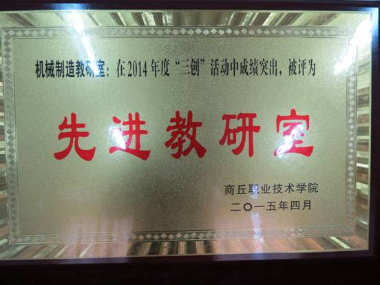 机械制造先进教研室奖牌